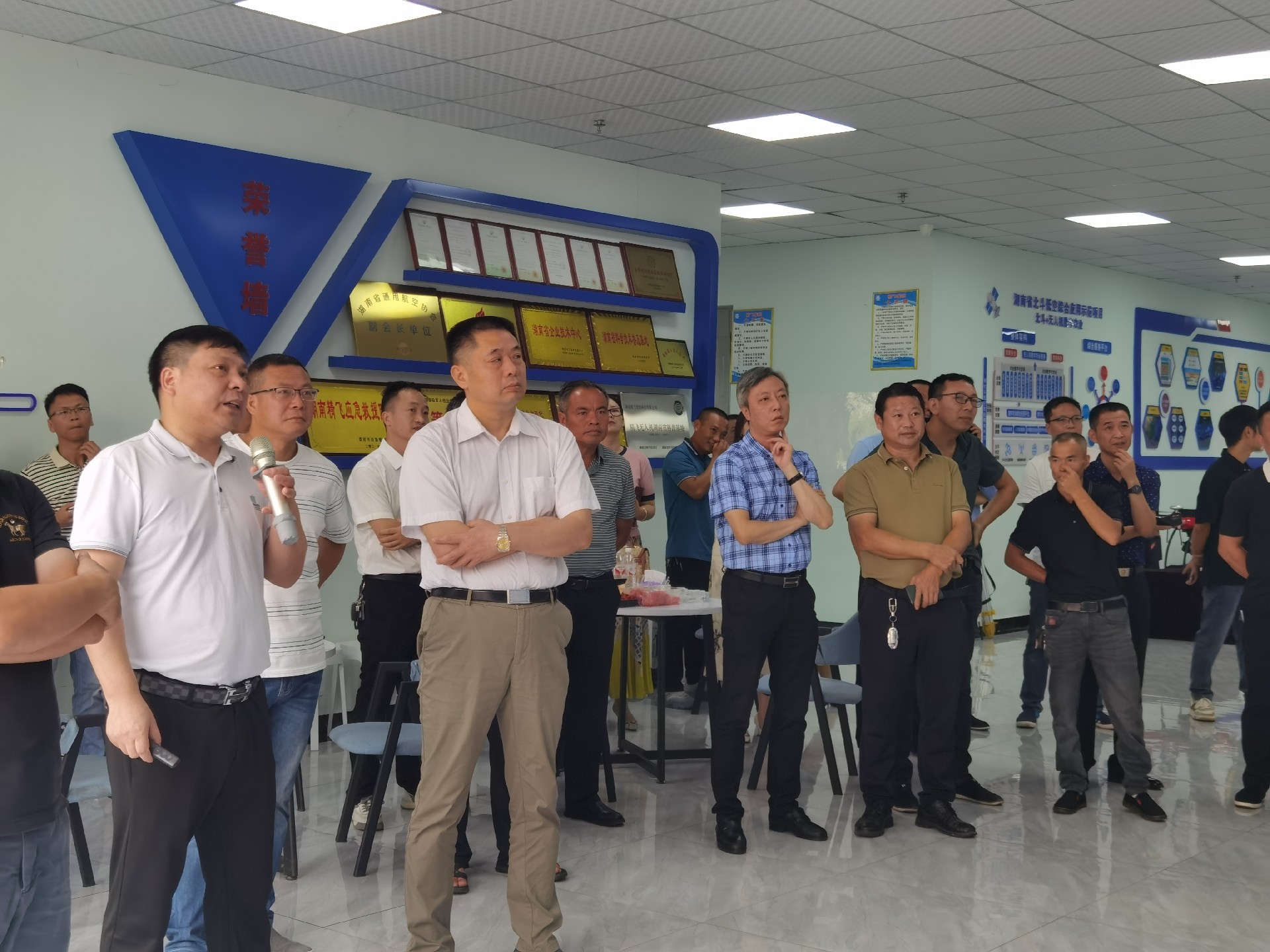 在精飛智能展廳,精飛集團董事長龍永堅向調(diào)研組一行匯報了企業(yè)生產(chǎn)經(jīng)營、技術(shù)研發(fā)、產(chǎn)品銷售等情況,其中重點講解了無人機數(shù)字農(nóng)業(yè)服務(wù)應用示范建設(shè)項目及自主開發(fā)的全國首個“北斗+無人機數(shù)字農(nóng)業(yè)綜合應用與公共服務(wù)”平臺運營情況。
