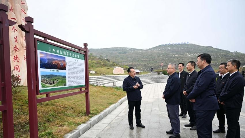 109日,沈曉明來到冷水江錫礦山,實地察看礦山修復(fù)、尾礦庫治理、銻污染河道治理等工作。)
